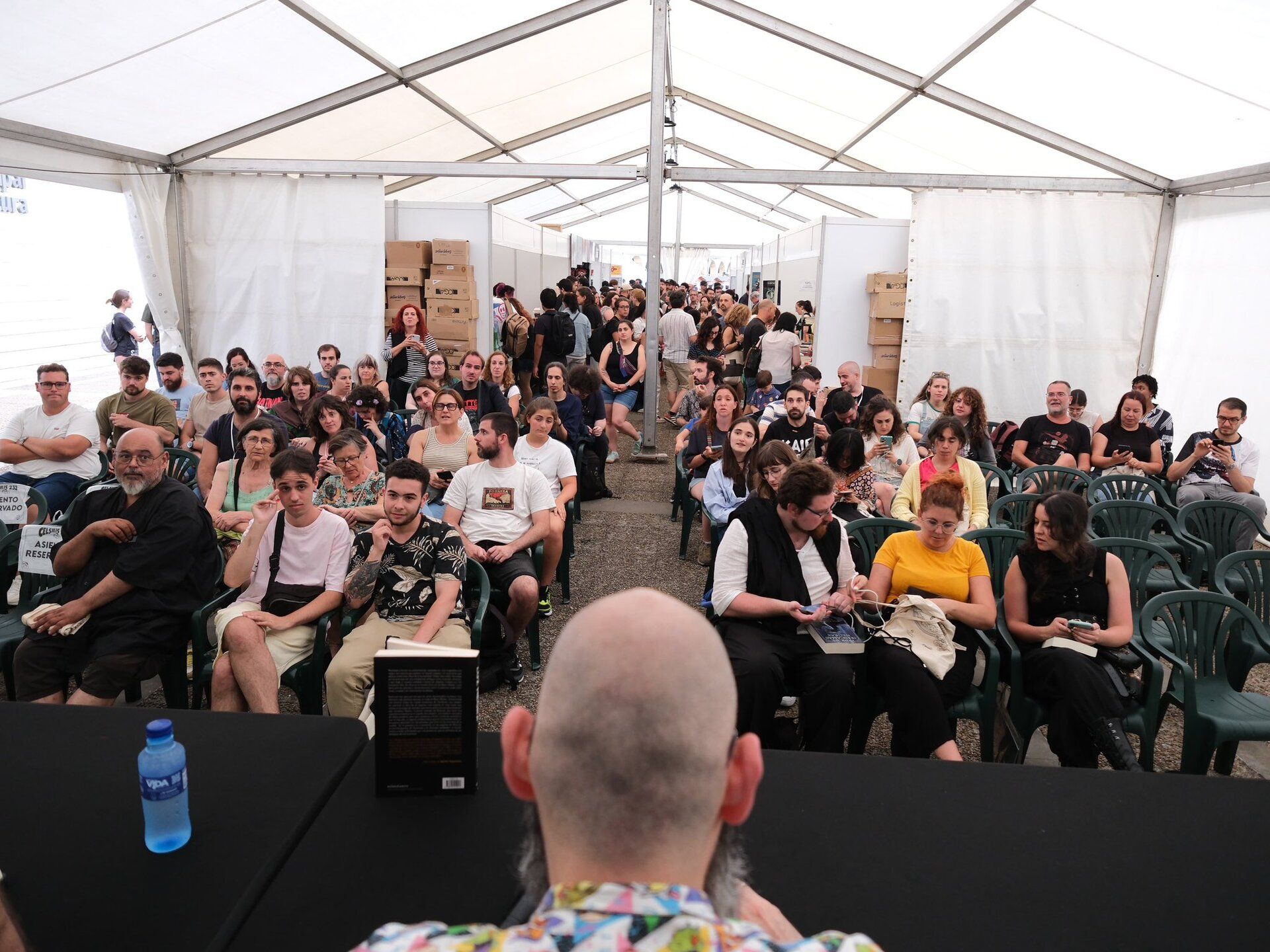 He de reconocer que quedé muy sorprendido con las espectaculares colas para comprar merchandising de las obras de Sanderson, gente que después iba a hacer otra cola aún más larga para asistir a una charla o que el mormón millonario le firmara un libro. Actividades que, por cierto, no eran compatibles en el caso de muchos autores: si después de dar una charla, el autor firmaba un libro, no había tiempo material de asistir al acto y ponerse en la cola de las firmas, así que había que engañar a un amigo o traer a un familiar de baliza para que mientras que tú ibas a la charla él guardara sitio en la cola cargado con las siete ediciones exclusivas previamente compradas en la tienda de campaña del merchandising. Como me dijo Fran, “ser fan de este hombre es una servidumbre”.